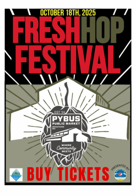 Our Second Annual Fresh Hop Festival is coming to Pybus Market and you won’t want to miss it! Join us for a celebration of the season’s freshest brews, delicious local food, and lively entertainment. We’re bringing together breweries to showcase their unique fresh hop creations. With live music and a welcoming, family-friendly atmosphere, there’s something for everyone to enjoy!